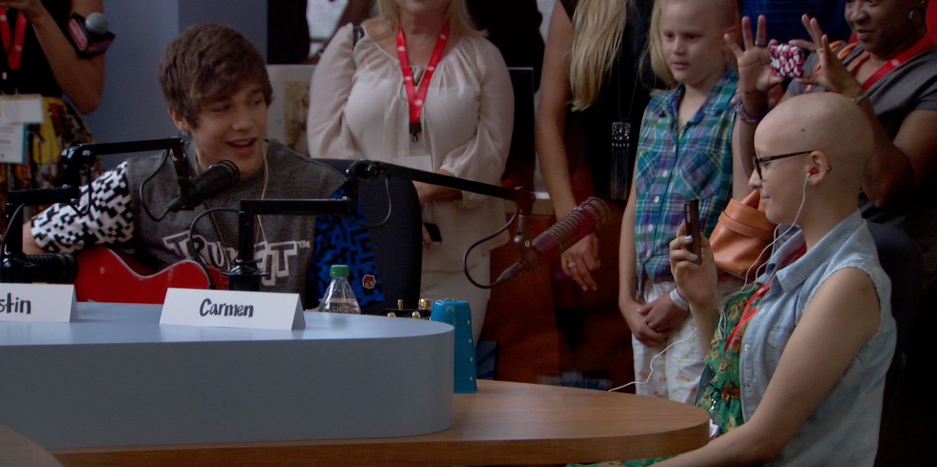 Austin doing an acoustic version of a song. That girl just beat cancer and didn’t miss a beat taking a video up close.