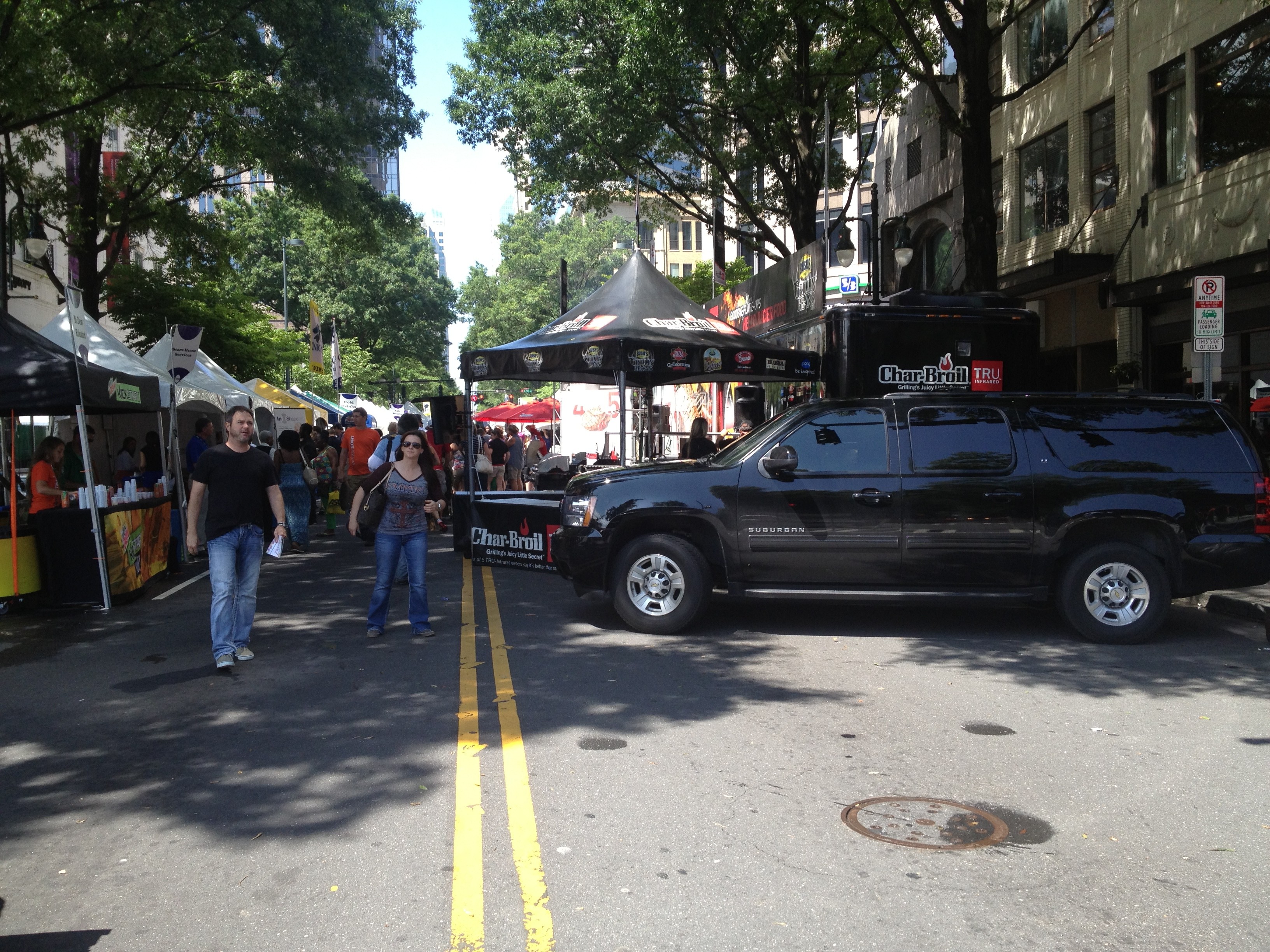 When I got the news that I was going to be shooting a show involving food, I was super pumped. One- I like to shoot and, two – I like food. So I popped over to Charlotte (on the way I saved a turtle in the road that was on it’s back) for a dark and early live shot set up. I was working B cam that day, but, ironically, the A cam guy was also from ATL. Small world right? Anyway, we go there and the entire street was blocked off for the event. Lining the sides were tons and tons of vendor tents – some were food, some were crafts, and some were games for the kids. We set up shop in front of the CharBroil Grill trailer. WE put up a few HMI’s and cross shot with HDX900’s. Here, our talent and an experienced grill chef cooked some delectable treats up for the viewers at home. Luckily we had a bit of a drizzle so no one could tell I was drooling over the food. As soon as the live shot ended, you know the whole crew was eating whatever they just made. When the shoot was over, I was full, but still managed to carry gear and load up.