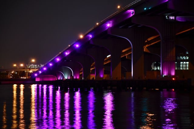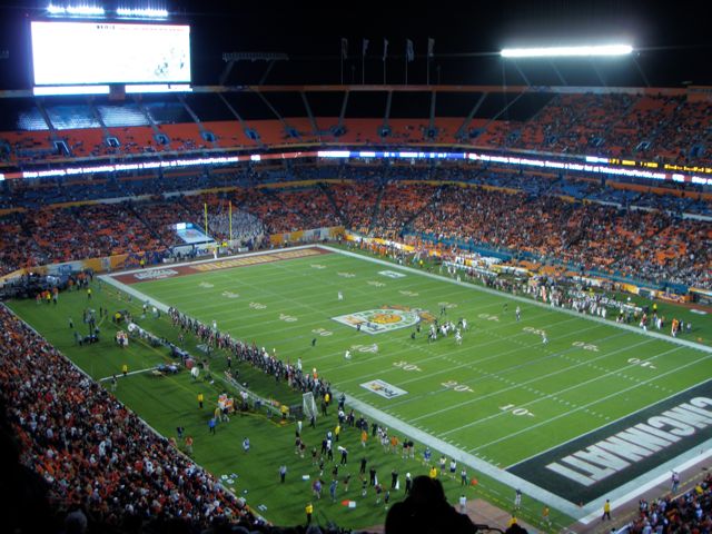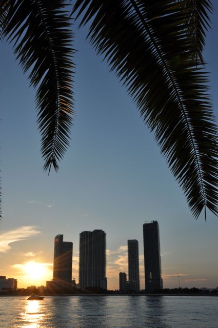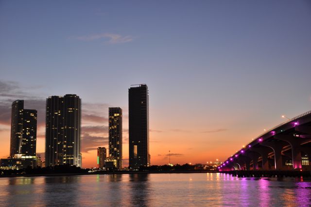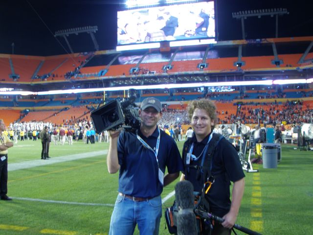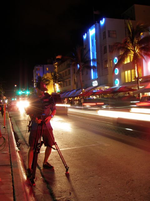 Skip Clark and Dan Lowrey are in Miami, Fl, for Fox’s coverage of the BCS and the Orange Bowl. The Charlotte based crew arrived late Monday and have been working through the week shooting features, scenics, and a lot of football for the Pre-Game Show and the game broadcast. Tuesday found the guys at the Westin in Hollywood, Fl, shooting green screen with the VA Tech Hokies. Later that night they hit the town for scenics on South Beach. New Year’s Eve, while everyone else was celebrating, they were out partying it up with their Varicam shooting sunset over the city (pictured below, it was spectacular!), nightscapes (Miami is beautiful with the water in the foreground, pictured above), dolly shots on South Beach, and beauty shots of the Miracle Mile in Coral Gables. They’re resting a little today and tomorrow, but they’ll be back at Dolphins Stadium for the NFL game on Sunday then it’s back to the BCS next week for the Championship Game! Be sure to look for the Pre-Game Show on Fox for the Florida features (they shot those before the holidays) and more scenics!
