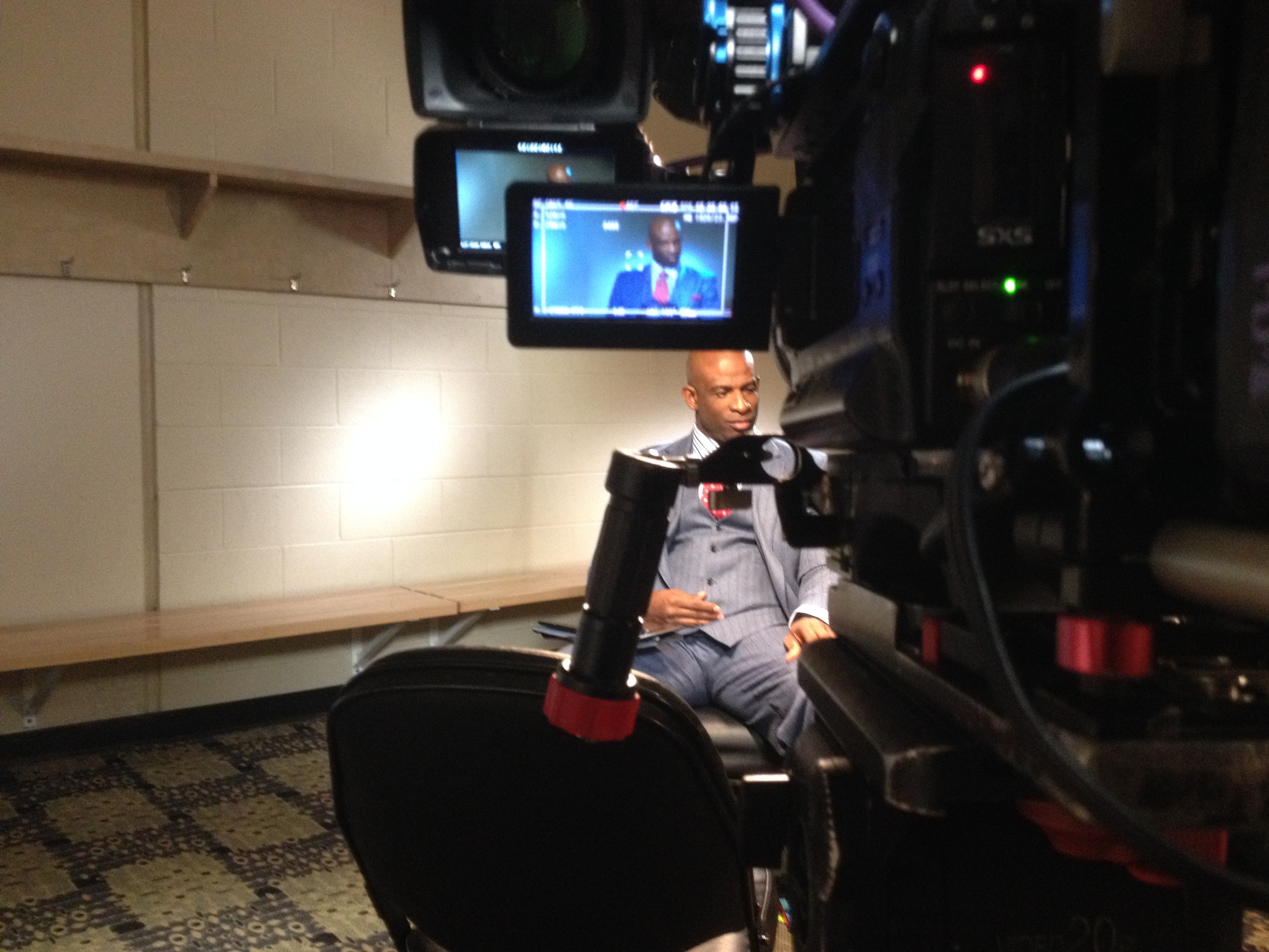 Day 3 was very exciting. We setup a 3 HDX900s and a C300 for an interview featuring Rich Eisen, Deion Sanders, and Bruno Mars. Bruno was super cool and Deion showed him a great commercial that has Deion returning to his “Primetime” roots.
