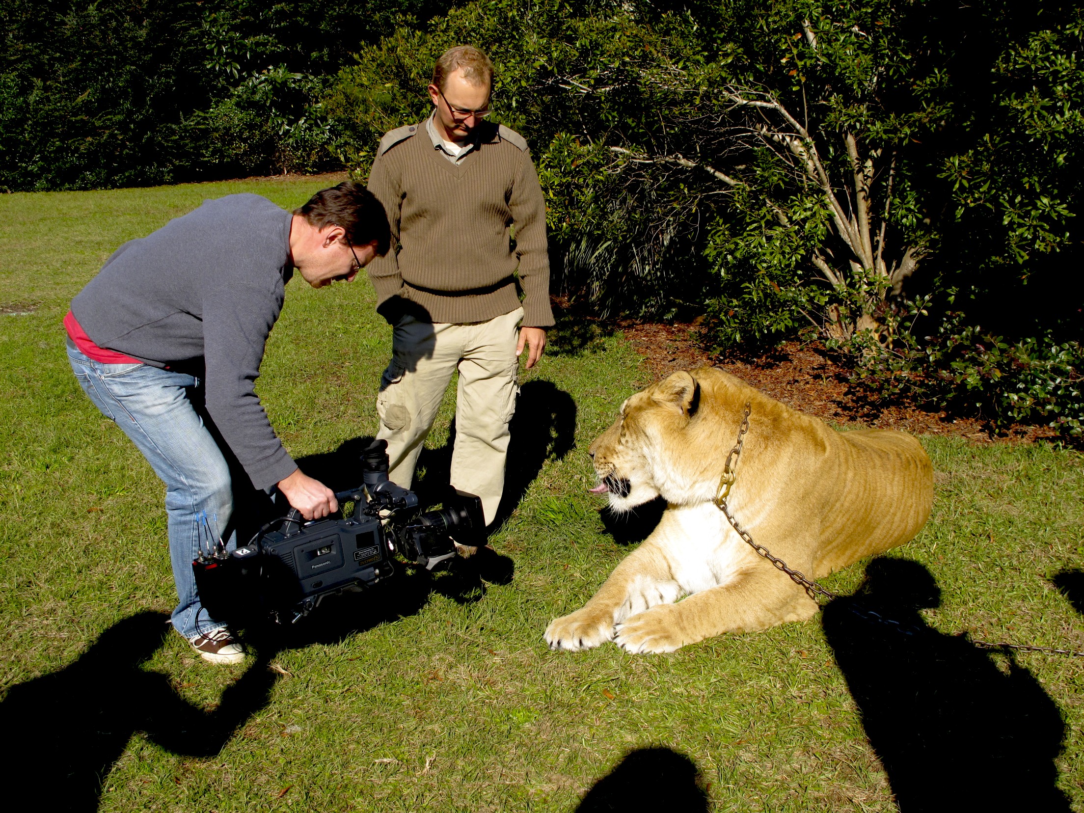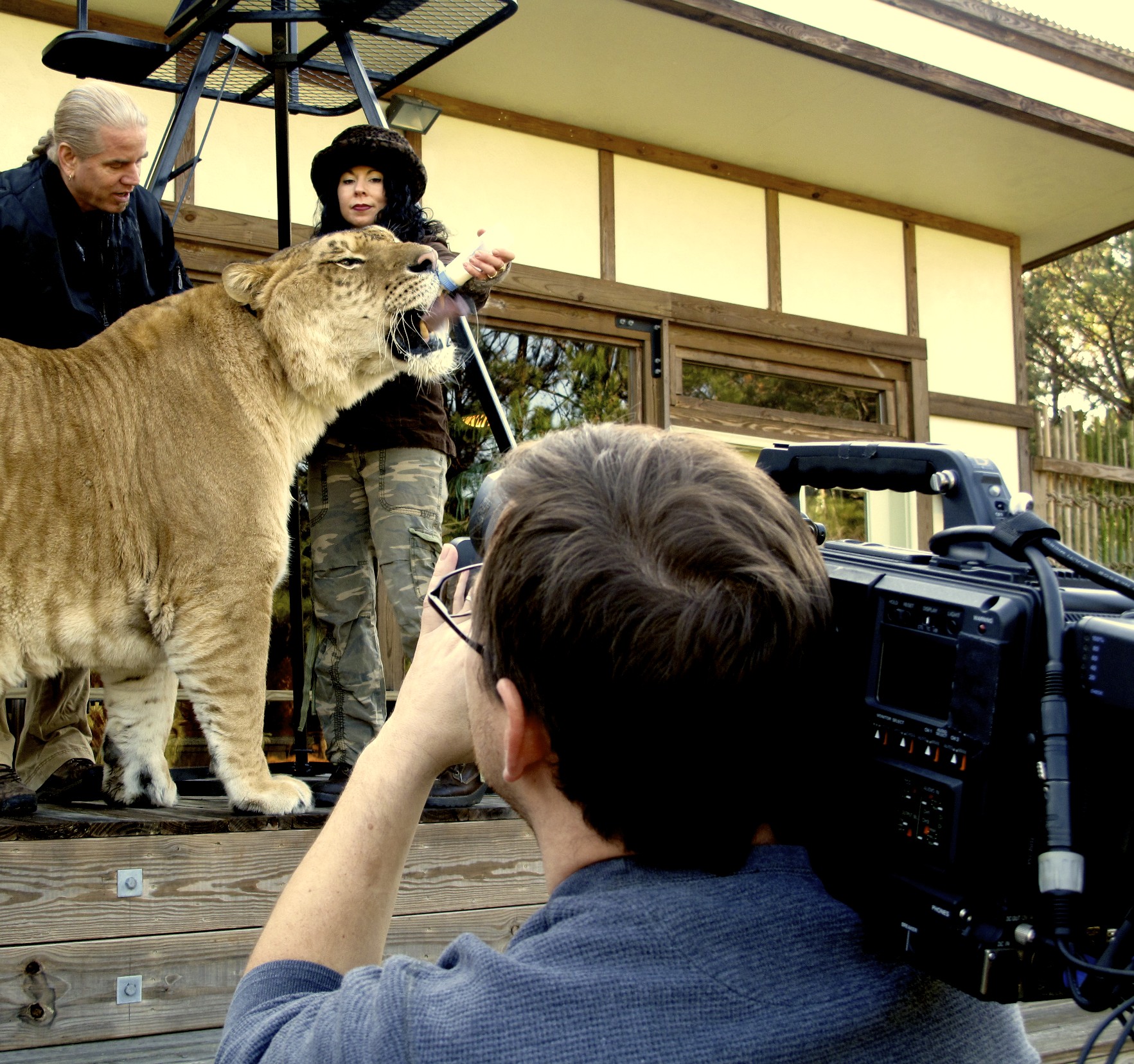 The crew spent the day with Hercules and animal trainer trainer Bhagavan Antle (Doc), his crew of assistants and the Panasonic Varicam. Doc has provided animals for a ton of films (Ace Ventura When Nature Calls, Dr. Doolittle, Mighty Joe Young), he is the founder and director of T.I.G.E.R.S., The Institute of Greatly Endangered and Rare Species and the R.S.F., The Rare Species Fund.